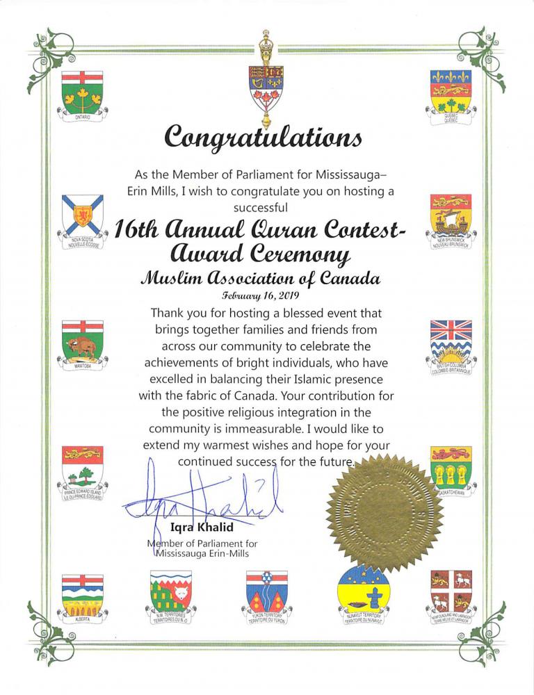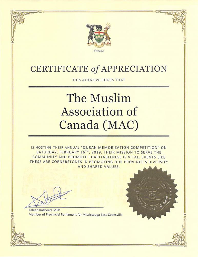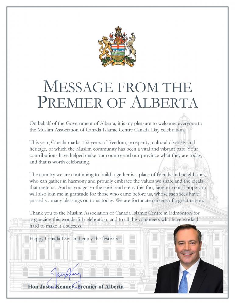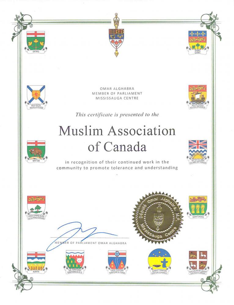 MAC's work is for the people and for healthy and vibrant communities that build our country strong and united. Below are letters from or civic leaders who express supportive sentiments around MAC's community work. The Premier of Alberta the Hon. Jason Kenney, our respected Members of Parliament Iqra Khaled and Omar Alghabra along with our esteemed Member of Provincial Parliament Khaleed Rasheed. The work we do at MAC ensure the needs of faith communities are met and our participation in neighbourhoods and cities brings about harmony, prosperity and unity between different members of our society.