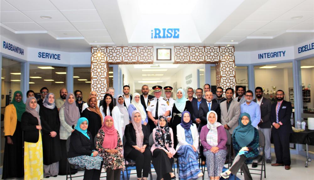 Group Photo showing Peel Regional Intern-Chief of Police Chris McCord, Rob Shearer the Chief’s Executive Officer, Peel Police Services Board members VP Ron Chatta and Ahmed Attia with MAC's Executive Council and staff along with Muslim community leaders from the National Council of Canadian Muslims, Islamic Relief Canada, Muslim Awards for Excellence, ISNA Canada, MuslimFest, Dawanet, The Syrian Canadian Foundation, Muslim Council of Peel, The Canadian Muslim Vote, Imam Ibrahim Hindy, Ibrahim Daniel, Dr. Kathy Bullock